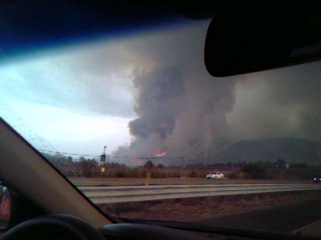 It was the sound of police sirens that first alerted us to the evacuation up in Rancho Bernardo, so when we heard them in OC my heart was pounding as I raced to the computer to find out what was happening. Unfortunately, they are still using a dial-up connection to the internet. I was not aware that people still used dial-up. This was, perhaps, a divine test of my patience, as pages that take more than five seconds or so to load usually drive me nuts. After what seemed like an eternity, I was finally able to locate the number to the local sheriff and to the Santiago Fire hotline. I received assurances from both that the danger was not imminent, and there were no evacuations for this community. This, despite the fact that we could see the flames from the second-floor balcony and ash was beginning to fall like snow.